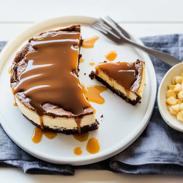 Indulge in Decadent Caramel Brownie Cheesecake Delight