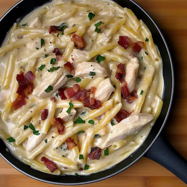 Creamy Garlic Pasta with Bacon and Chicken Delight
