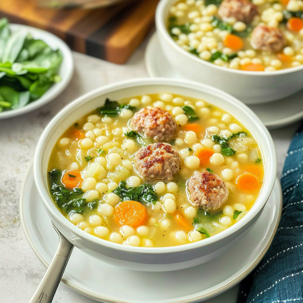 Indulge in the warmth of Italian Wedding Soup—a comforting blend of savory meatballs, vibrant greens, and rich broth. This delightful dish is perfect for family dinners or special gatherings. Each bowl is a celebration of flavors that brings everyone together, making it an unforgettable culinary experience.
