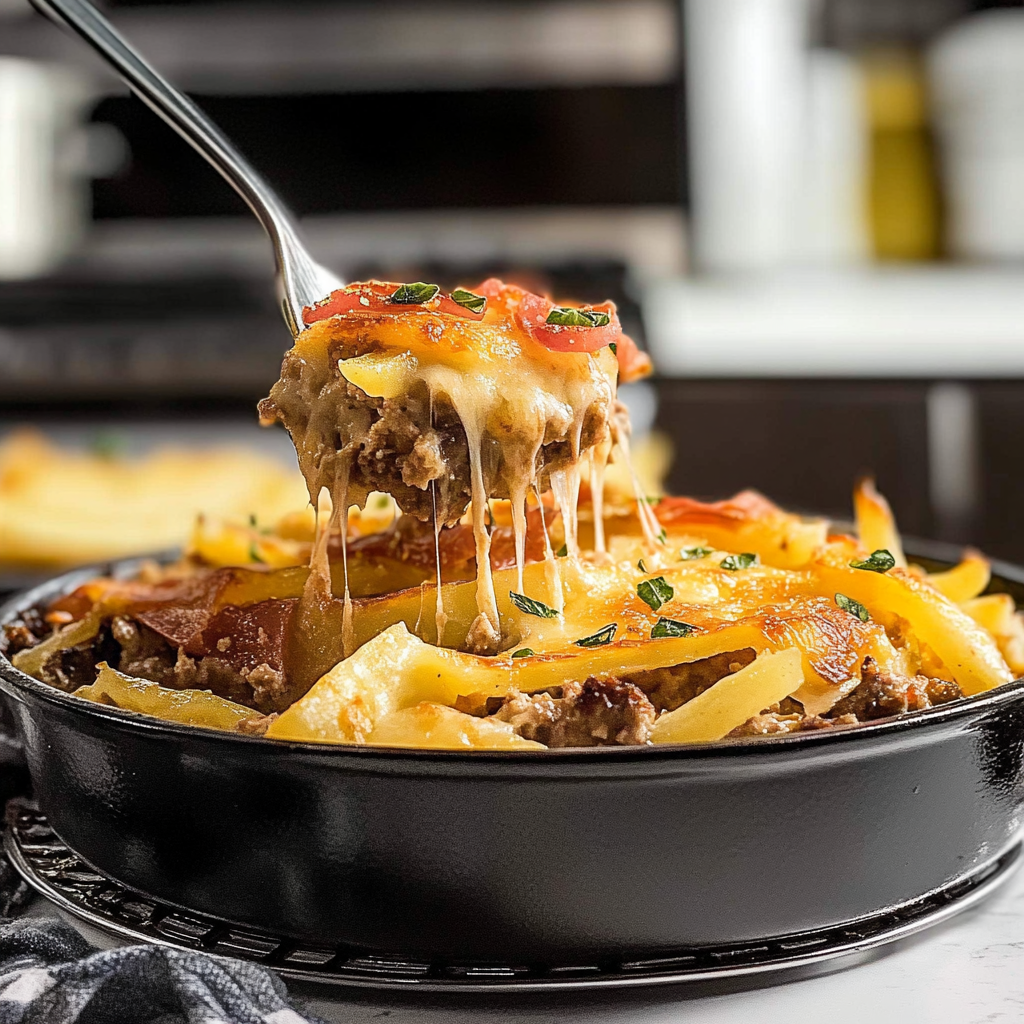 Hobo Casserole is a heartwarming dish that combines savory ground beef, colorful veggies, and tender potatoes into a comforting one-pot meal. This nostalgic recipe is perfect for family dinners or potlucks, bringing everyone together around the table with its delightful aroma and rich flavors. Easy to prepare and customizable, Hobo Casserole promises to be a favorite in your home, ensuring satisfaction with every bite.