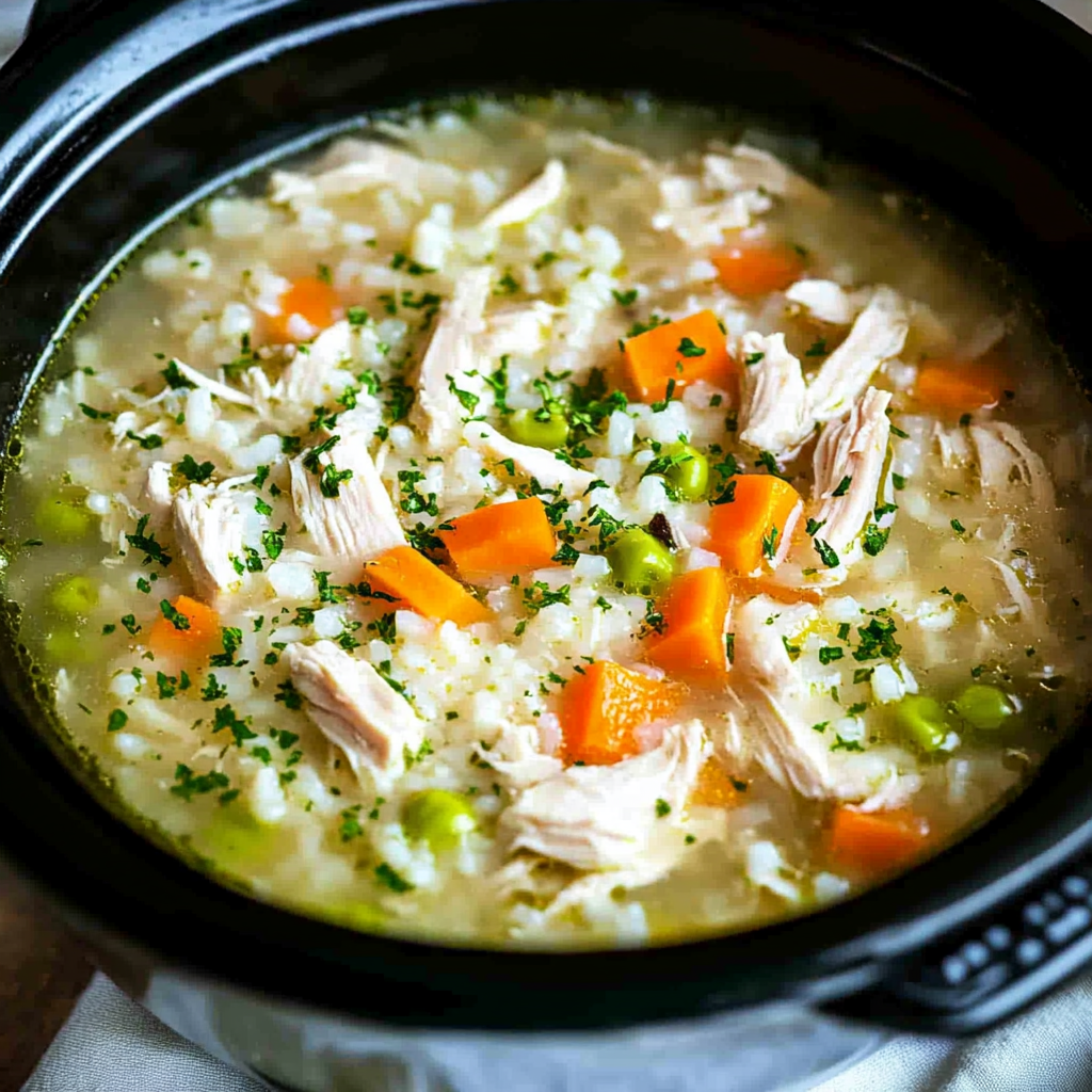 - Slow Cooker Chicken and Rice Soup is a heartwarming dish that fills your home with cozy aromas