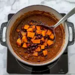 Add Black Beans: Once boiling, reduce heat to low before adding rinsed black beans. Let everything simmer gently for about 20-25 minutes until sweet potatoes are tender.