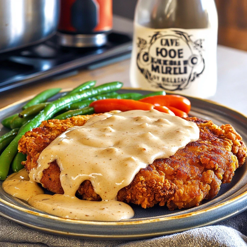 Making the Gravy: After frying, remove the steaks from the skillet and let them rest on a paper towel-lined plate. In that same skillet, keep about two tablespoons of oil and whisk in some flour to create a roux—cook it until it turns light brown and smells nutty (about 1-2 minutes). Gradually add milk while stirring continuously until smooth. Let this simmer until thickened; this should take about 5 minutes. The combination of flavors will warm your kitchen!