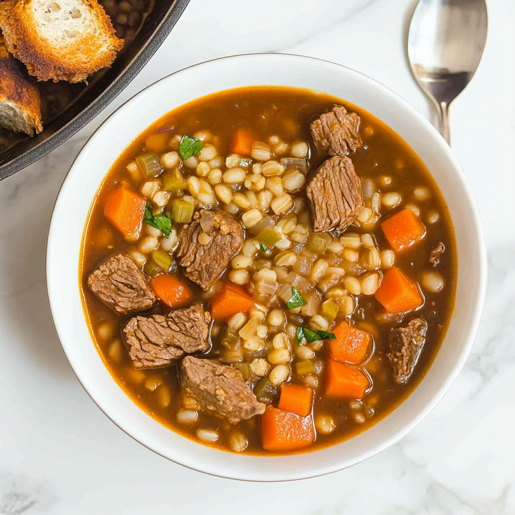 Savor the warmth of homemade beef barley soup as tender beef and hearty barley simmer in a rich, savory broth. This comforting dish is packed with colorful vegetables and aromatic herbs, making it perfect for cozy dinners or meal prep. With its delightful flavors and satisfying texture, this soup will remind you of family gatherings and cherished memories—ideal for chilly days when you need a hug in a bowl.