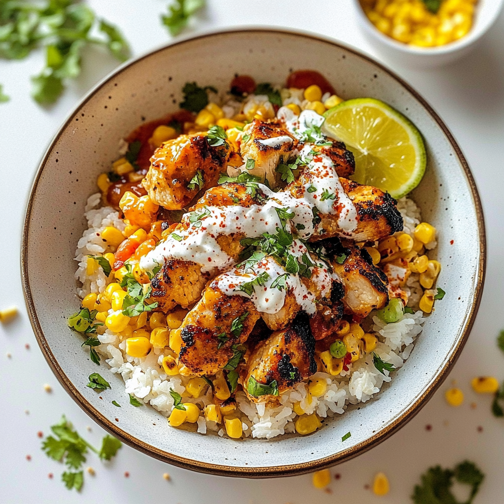 - Elevate your street corn chicken rice bowl with fresh lime juice and cilantro