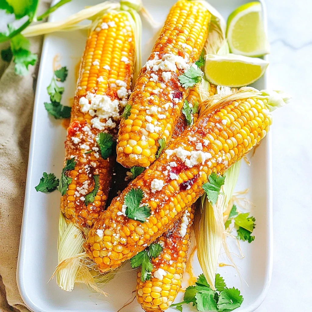 Serve and Enjoy: Your Mexican corn on the cob is ready to shine! Serve it warm, garnished with lime wedges on the side for a zesty squeeze just before eating. As you take that first bite, relish in the explosion of flavors—the sweetness of corn mingling beautifully with creamy toppings and zesty lime juice! Enjoy this delightful treat at summer barbecues or cozy family dinners alike; it’s sure to be a hit every time.