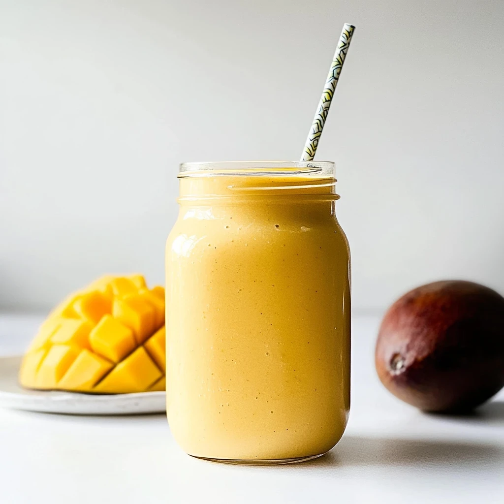 The mango smoothie recipe uses fresh mango and ripe banana for natural sweetness and creaminess.