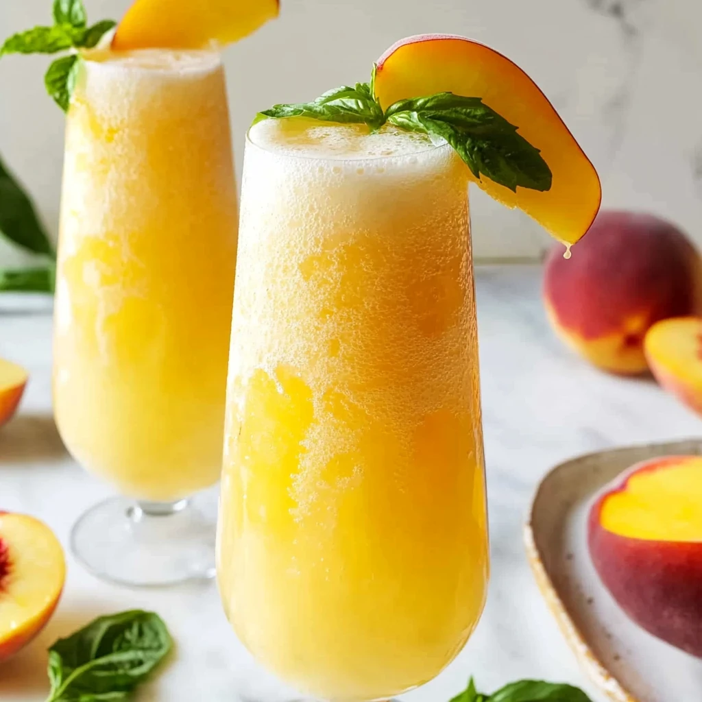 Serve and Enjoy!: Finally, pour your peach bellinis into elegant flutes or glasses—this is when you really get to show off your masterpiece! Garnish with a slice of fresh peach or a sprig of mint for an added pop of color and aroma. Take a moment to appreciate the beauty before indulging in this delightful drink on a warm summer day or during any special occasion! Cheers to good times!