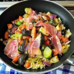 - The vibrant vegetables add texture and color, while the prosciutto brings a savory touch
