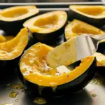 - Place the squash cut-side down on a parchment-lined baking sheet and roast for 25-30 minutes until tender.